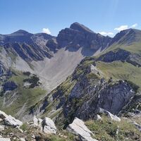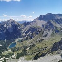 Weiter geht es über den Grat hinüber zum Feldernkreuz, zum Feldernkopf und schließlich hinauf zur Soiernspitze (Wegweiser "Feldernkreuz/Soiernspitze"). Einige Stellen entlang des Abschnitts sind rutschig und erfordern Trittsicherheit und Schwindelfreiheit. Die Soiernspitze bietet einen tollen Rundumblick hinein ins Karwendel, in Richtung Walchensee und auf die bayerischen Voralpen.