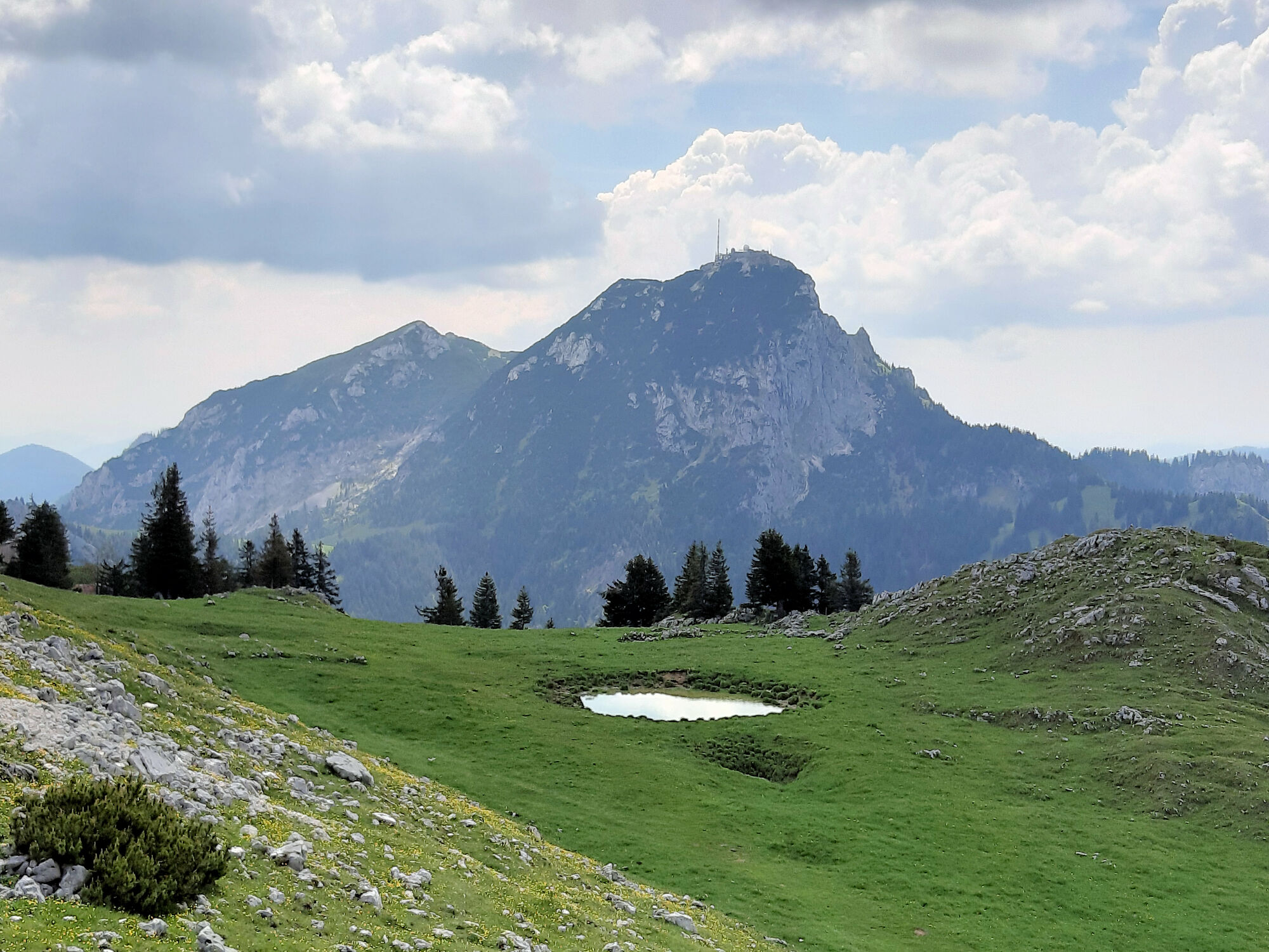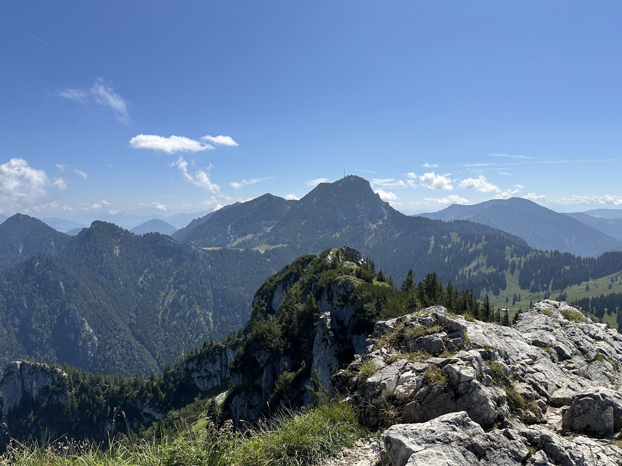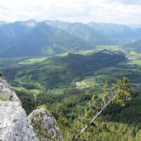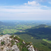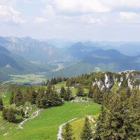 Vom großen Wanderparkplatz in Birkenstein gehen wir am Oberwirt vorbei und auf einem Fahrweg nach Norden hinauf. Zunächst steigt er nur relativ flach im Wald an. Dann dreht er an einer versetzten Kreuzung nach rechts (Osten) ab, wird hinter dem Sattelbach steiler und schwenkt nach Südosten. Nach einigen Kehren dreht er gegen Norden. Nach dem Wald kann man die Kehren auf einem schmalen Steig nach dem Viehgatter rechts abkürzen. Unmittelbar vor der Berggasthof Kesselalm geht es rechts herum, über einen breiten Wiesenhang und zur Talstation der Materialseilbahn. Dort endet der breite Weg. Wir zweigen links ab und folgen einem Bergweg durch lichten, steinigen Wald bis zur Hubertushütte, wo man einkehren kann. Der Gipfelsprint von nicht mal 100 Höhenmetern führt über den übersichtlichen Schlusshang nach Nordosten bis zum Kreuz des 1622 Meter hohen Breitenstein.