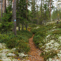 The Nuijapoloku routes range between 4 and 20 kilometres in varying terrain. A large part of the Nuijapolku route runs along well-maintained paths and forest roads that are easy to travel on foot. Travelling through beautiful forests and past patches of rocky terrain, the route contains some differences in elevation and more challenging sections. The section from the Morajärvi lean-to to Pikku-Santavuori consists of a narrow, rocky path, which is one of the most challenging stretches of the trail. The narrow paths in Meskaisenvuori give you a taste of real wilderness. The Leevi route (Leevin lenkki) in Piennevanmaa offers a glimpse into the field landscape typical to South Ostrobothnia.