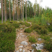 There is plenty to see along Nuijapoloku, such as Pikku-Santavuori hill, Pirunpellot (boulder field), Piennevanmaa fields and the path towards the Rajakallio quarry, with view towards Salonkylä.