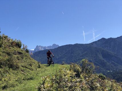 The tour ends with a descent to Korensko sedlo. We ride back on the road where we climbed, at the intersection after 2.5 km we turn sharp left. The gravel road is mostly descending for another 5 km until a kilometer before the finish it connects to the main road. We turn sharply left towards Korensko Sedlo, where we can congratulate ourselves as we completed the Trans Karavanke MTB Trail!