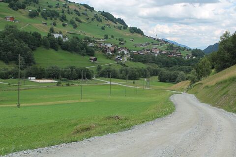 Auf verkehrsarmen, zum Teil asphaltierten Wegen, führt die Route nach Cavardiras, einem ganz ursprünglichen kleinen Dörfchen über dem Rhein. Auf der Terasse des "Pign Padua" lässt sich herrlich sitzen...
