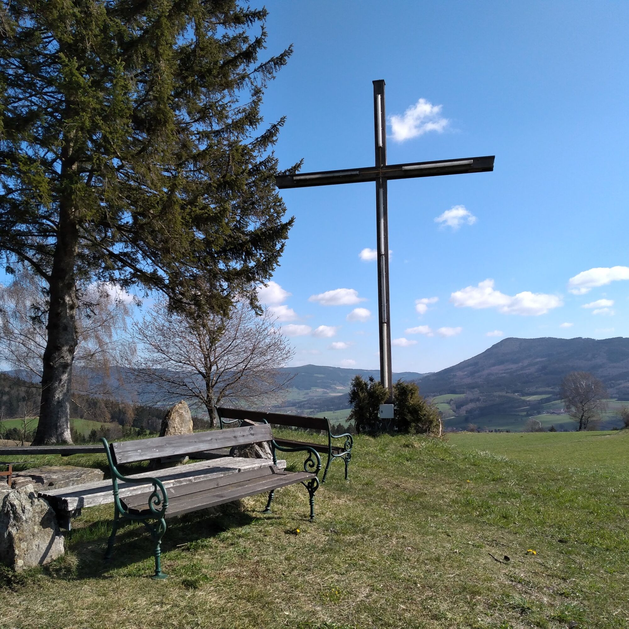 Starting from the church square via the Leiten road, you come to 2 memorial crosses with a magnificent panoramic view and a rest area. Hike to the left, at the next farm (Poidl-Leiten) turn left again, after about 80 m you leave the Bayerlweg and go left uphill. Through the forest, you reach the transmission mast, then continue right where you come to a newly built chapel with a beautiful view of the parish church St. Oswald. Continue until the farm and then right to the Peace Cross (rest area with magnificent panoramic view, illuminated at night). Return northwards to the starting point.