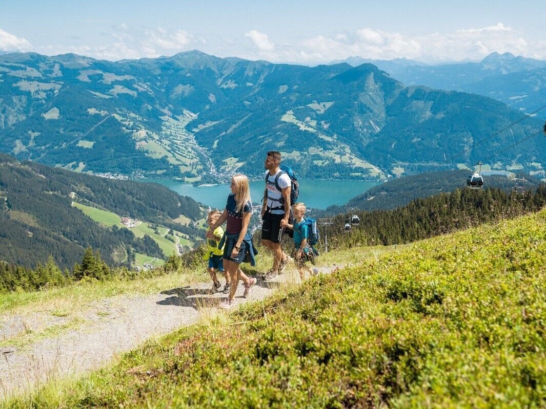 Starting from the Schmittenhöhebahn car park at the head of the Schmittental valley (access by bus), an easily accessible trail leads uphill. The trail then quickly climbs higher and soon the first views of Zell am See and Lake Zell are revealed. After about half an hour's walk, you reach the Berghotel Jaga-Alm, and the Berghotel Blaickner's Sonnalm (located next to the Sonnenalmbahn mountain railway) after a further hour. Following several hairpin bends, the Schmiedhofalm is within sight. The Sonnkogel is only a 40-minute walk away.
