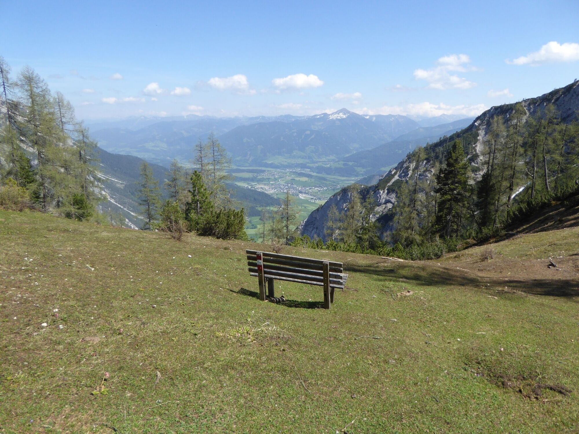 Von dort geht`s rechts leicht ansteigend hinauf bis zum Rosseggerdenkmal. Hier gibt`s dann zwei Varianten: Weiter zum Friedenskircherl und ab da nur für geübte Bergwanderer über den Florasteig zum Gipfel oder vom Rosseggerdenkmal hinauf durch den "Latschenweg" zum Gipfelkreuz Stoderzinken, wo man die herrliche Aussicht vom Dachstein bis zum Großglockner genießen kann.