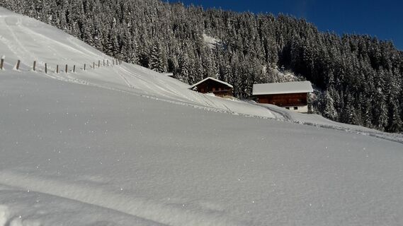 Heute geht’s mit Tourenski oder den Schneeschuhen auf unseren Hausberg. Wir starten an der Mittelstation – Kohleralmhof – zunächst den Forstweg entlang.