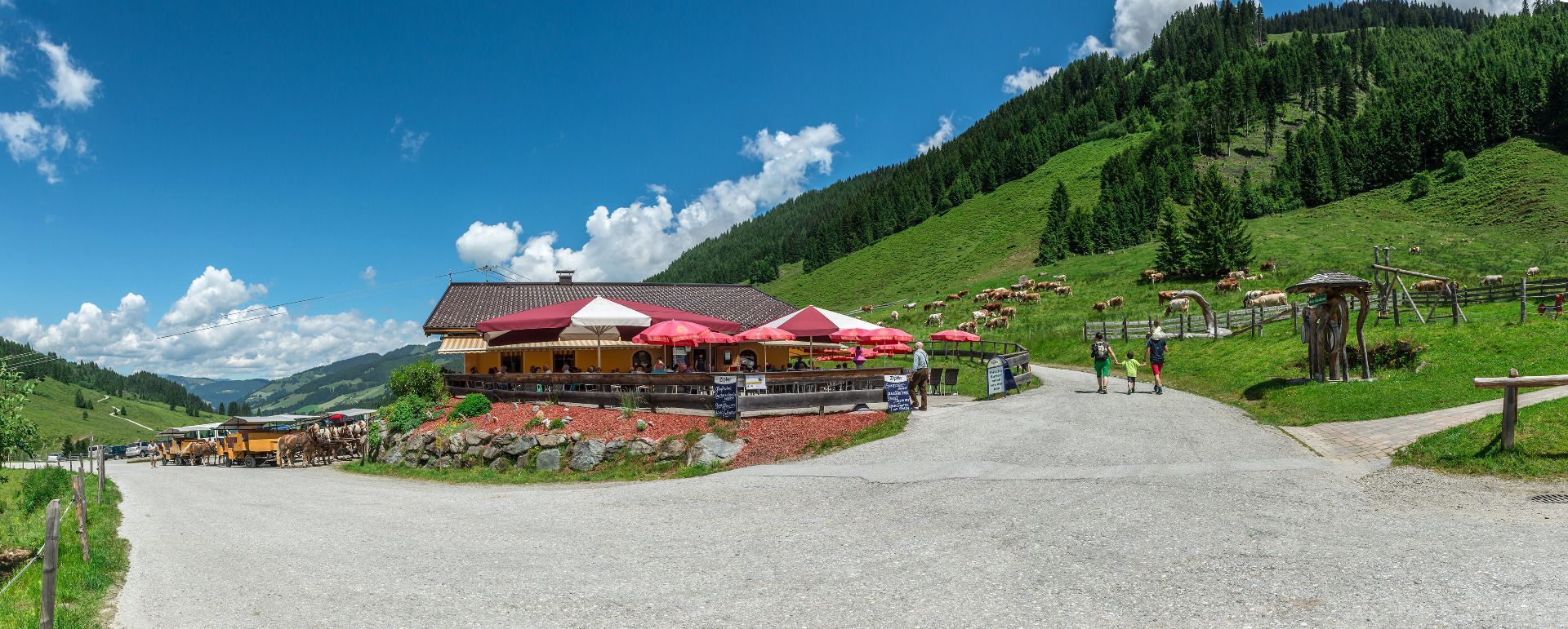 Bei dieser Wanderung steht das Almleben im Mittelpunkt. Man startet am Markbachjoch und wandert zur Brixentaler Holzalm (auch Käsealm). Die Holzalm ist mit 180 Milchkühen eine der größten Bio Milchalmen...