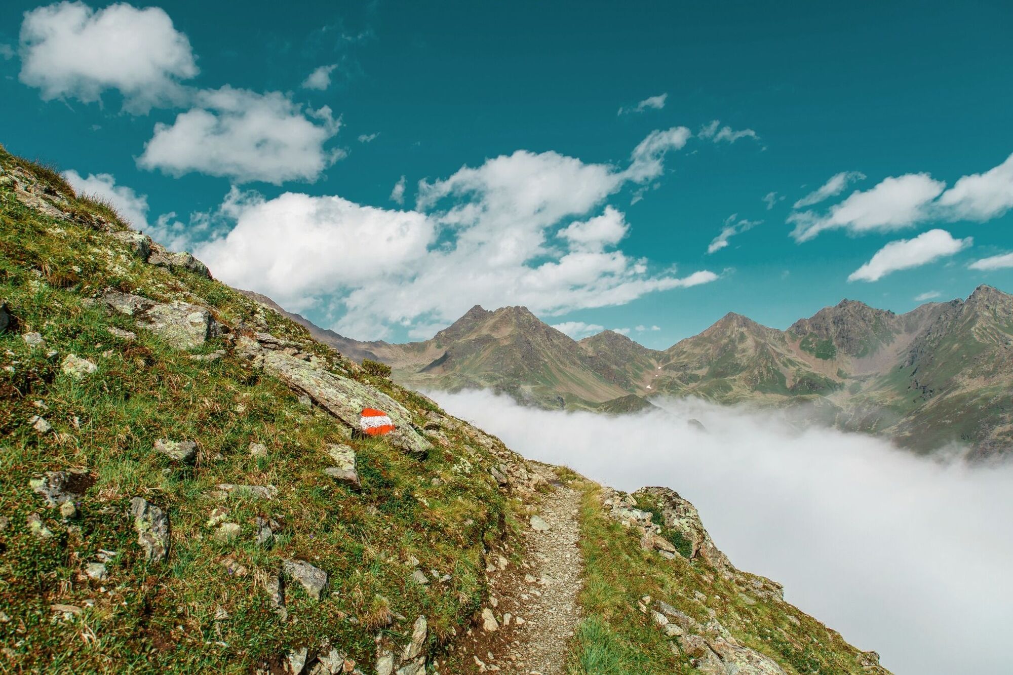 Vom Fisser Joch (F087) auf dem Gratweg Nr. 23 sehr aussichtsreich über die Sattelköpfe (F110), Brunnenköpfe (S255) zum Planskopf 2.804 m (S260). Nun weiter zum Urgjoch (S271), von dort zuerst etwas ansteigend...
