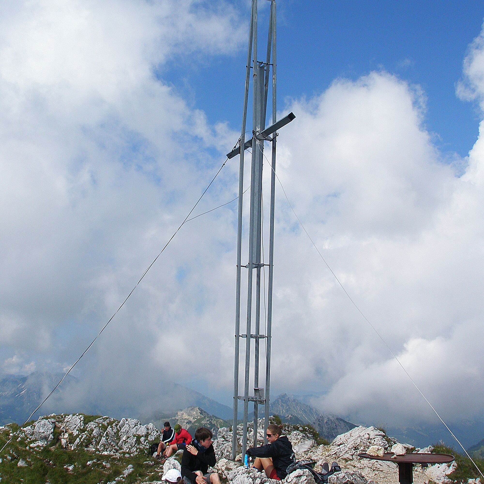 At the summit, our view roams around. The view in all directions is truly impressive. The somewhat modern steel summit cross is also not necessarily expected here at the top.