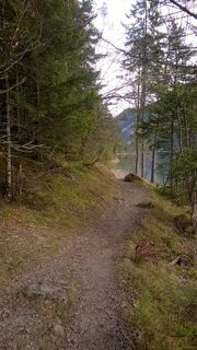 Am Ende des Sees kommen wir zu einem Kanal der den Heiterwanger- mit dem Plansee verbindet. Von einer Brück hat man einen tollen Blick auf das glasklare und türkisfarbene Wasser. Wir gehen weiter Richtung Norden, jetzt am Ufer des Plansees auch etwas erhöht bis wir am nördlichsten Ende an ein Bootshaus gegenüber dem Hotel Seespitze. Der Weg wird jetzt zu einer Forststraße und führt uns weiter entlang eines Kanals, an einem Wasserkraftwerk vorbei. Wir überqueren eine Bundesstraße um auf der gegenüberliegenden Seite zu den Stuibenfällen zu gelangen. Nach zwei bis drei Kurven und einem Stückchen bergab kommen wir direkt an die Kante einer Schlucht auf der wir einen tollen Blick auf den Wasserfall haben. Es kann sein das hier, bei niedrigem Wasserstand nur wenig Wasser herab rauscht. Danach geht es zurück auf demselben Weg den wir gekommen sind.