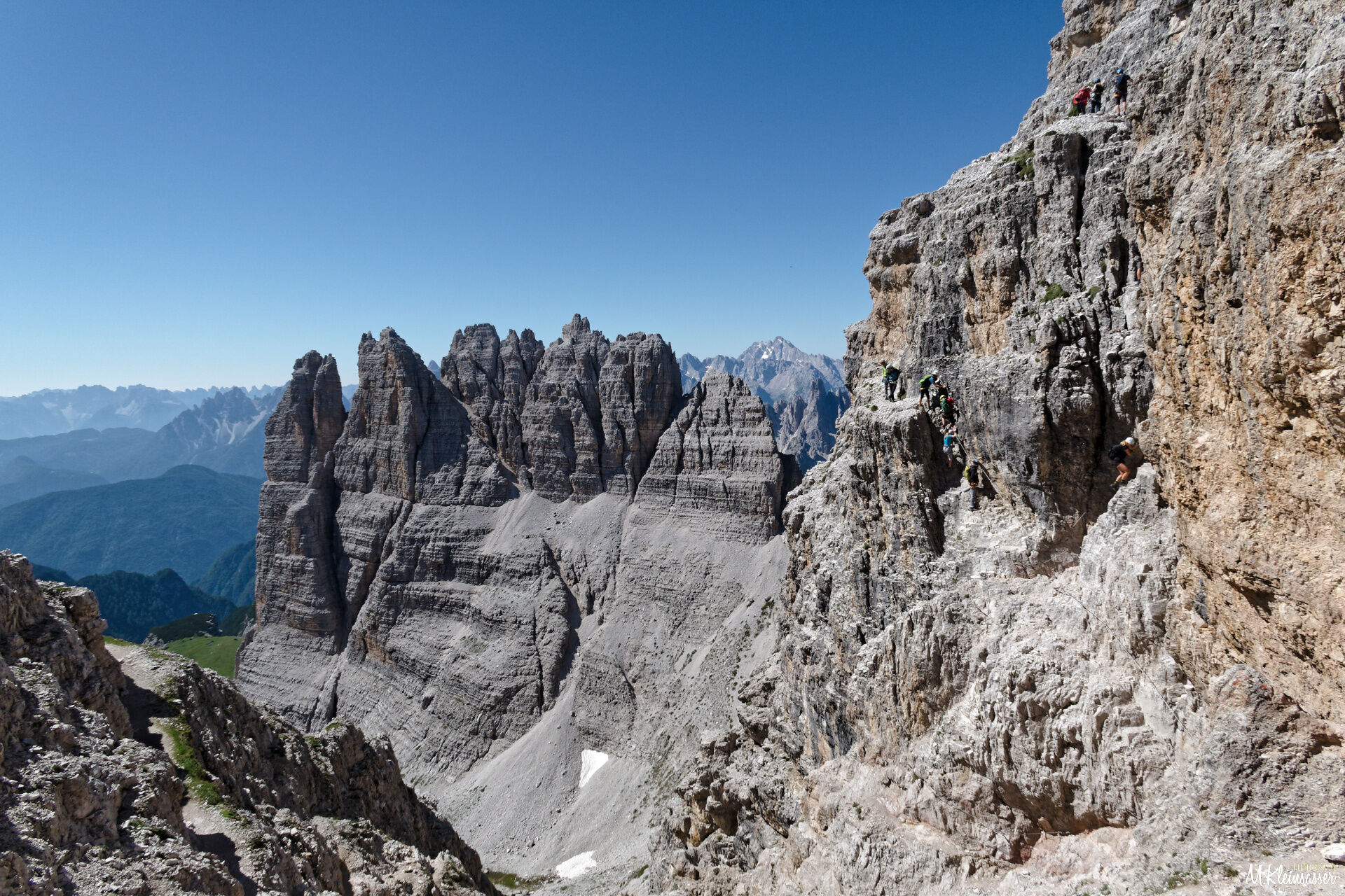 Nach dem Kletterteil gehts teilweise versichert weiter zum Gipfelplateau mit wahnsinniger Aussicht rundherum.