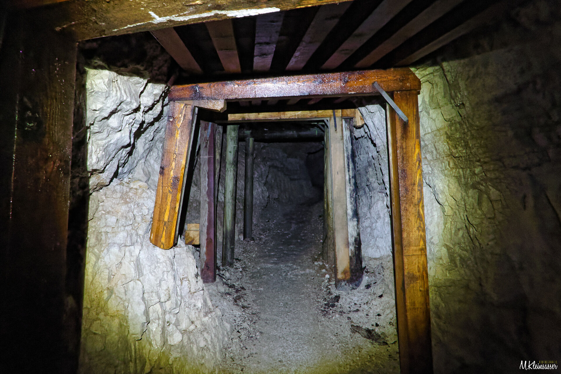 Durch das Stollensystem (Stirnlampe !!) gehts teilweise unversichert und versichert bis zum Ausstieg der Stollen. Immer wieder mit tollen Ausblicken aus den Scharten.
