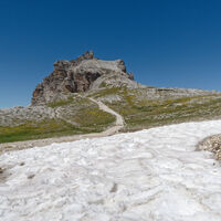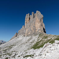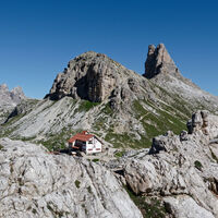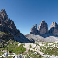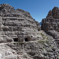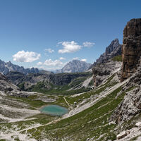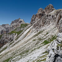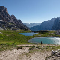 Ausgehend von der Auronzohütte gehts am Wanderweg hinter den drei Zinnen zum Pass und weiter zur Dreizinnenhütte.